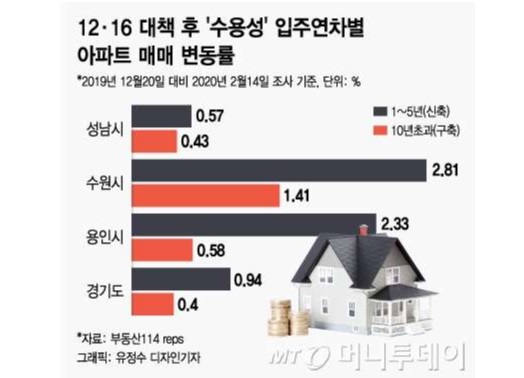 12.16 부동산대책이후 풍선효과에 따른 수용성 등 일부 수도권 집값 급등에 따른 그 보완대책이 이번 주내에 나올 예정입니다. 국토교통부는 수도권 이상과열 현상에 대한 추가대책 마련을 하고 있습니다. 15억 초과 아파트가 대출이 차단됨으로써 강남 집값은 어느정도 잡혔다는 평가입니다. 오른상태에서 잡힌 것이 무슨 의마가 있나 싶기도 합니다만 더 오르지는 않고 있다고 합니다. 그런데 9억원 미만 물량은 집값이 들썩이고 있습니다. 수원 팔달구는 조정대상지역임에도 불구하고 6.3%나 올랐다고 한국감정원 통계치에 나오고 있습니다. 예상되는 대책은 투기과열지구와 조정대상지역을 확대하는 것입니다. 이에 따라 수용성 등 수도권 일부지역의 추가 제재가 들어갈 것입니다. 12.16대책으로 15억 초과 아파트에 대해서는 대출이 완전히 막혀 버렸습니다. 그러나 15억초과 아파트 거래량은 전체 거래량의 2.5%밖에 안되고, 그나마 10채중 6채는 은행대출없이 구입이 된 것이라고 하니 그 효과가 전체 아파트시장에 미칠 수 있을까 의심스럽습니다. 심리적 제한조치는 있을 것이라고 합니다. 그런데 그 심리랑 실제 시장이랑 다르니까 문제입니다. 투기과열지구랑 조정지역 추가확대가 예상되는 제재인데, 투기과열지구는 LTV 40%, DTI 40%이고, 조정지역은 LTV60%, DTI 50%로 제한됩니다. 게다가 12.16대책으로 9억원 초과 아파트에 대해서는 DSR도 시행됩니다. 그 결과 9억원 이상 주택 매매가 다소 감소되고, 9억원 이하 아파트가 많은 수도권에서 풍선효과가 생기고 있습니다. 서울 아파트값이 고공행진을 하다보니 수도권쪽으로 넘어오고 있는 것입니다. 투기과열지구, 투기지구, 조정지역에 따른 대출조건도 달라지기 때문에 대출규제에서 조금 더 자유로운 수도권 신축 위주의 아파트 가격이 가빠르게 오름세를 보이고 있습니다.