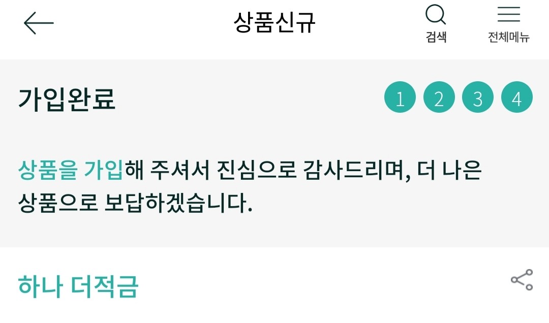 3시간에 걸쳐서 입출금통장 비대면계좌를 개설한 후, 또 2시간에 걸쳐서 [하나 더 적금]을 개설했습니다. 무려 5시간에 걸쳐서 적금을 개설하고 나니 마트에서 세일 마지막 품목을 득템한 것처럼 기분이 엄청 좋아졌습니다. 5시간동안 답답했던 짜증이 뿌듯함으로 바뀌었습니다.