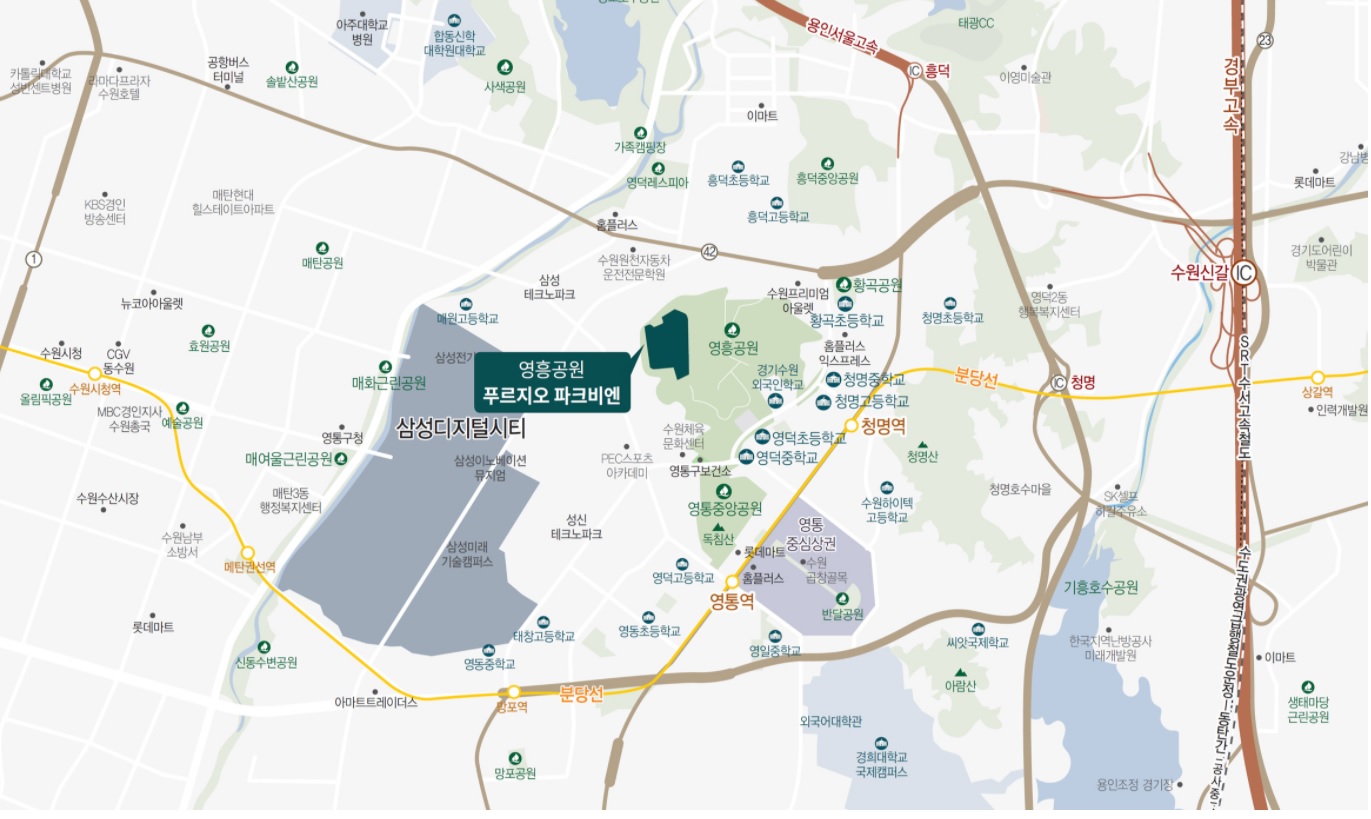 영흥 푸르지오는 경기도 수원시 영통구 원천동 309번지 외 52필지에 준공될 아파트이고요,